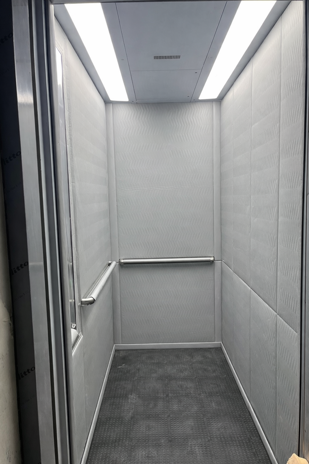 Премиальные интерьеры лифтовых кабин требуют особого подхода к сохранению отделки. Даже кратковременные строительные или сервисные работы могут привести к повреждению стеновых панелей, дверей и декоративных элементов кабины. Именно поэтому для объекта был выбран профессиональный комплекс защиты CoverLift, разработанный специально для зданий высокого класса.